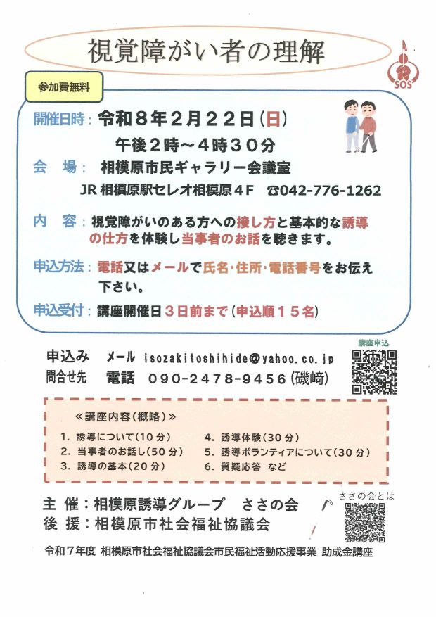 内 容:視覚障がいのある方への接し方と基本的な誘導の仕方を体験し