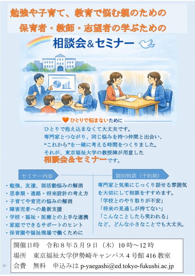 申込みは メール p-yaegashi@ed.tokyo-fukushi.ac.jp