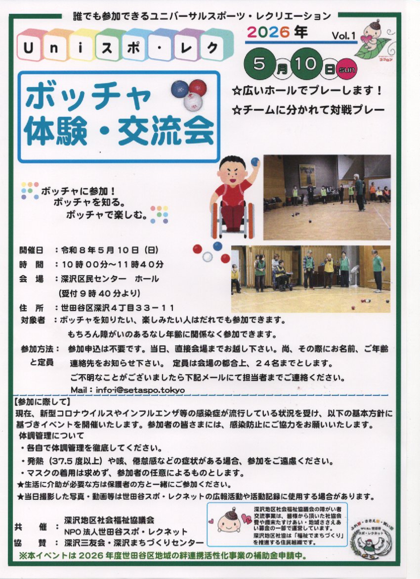 ★当日撮影した写真·動画等は世田谷スポ·レクネットの広報活動や活動記録に使用する場合があります。